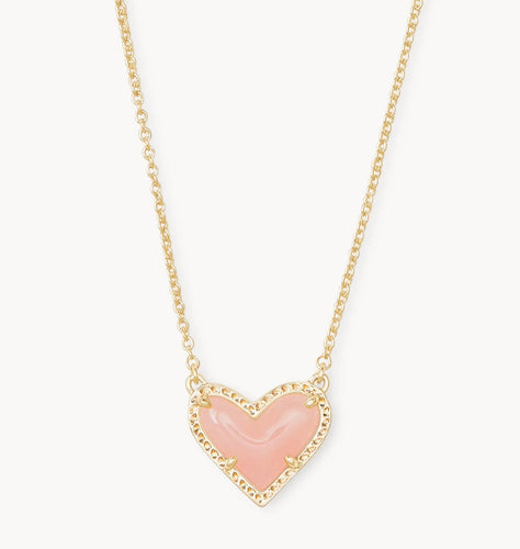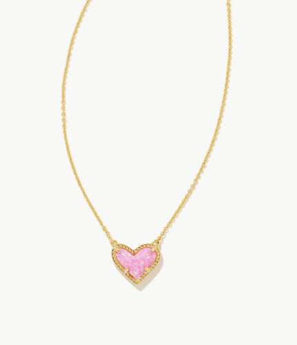 Ari Heart Gold Pendant Necklace in Bubblegum Pink Kyocera Opal