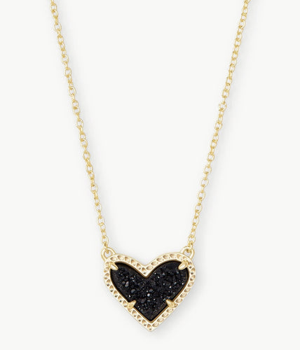 Ari Heart Gold Pendant Necklace in Black Drusy