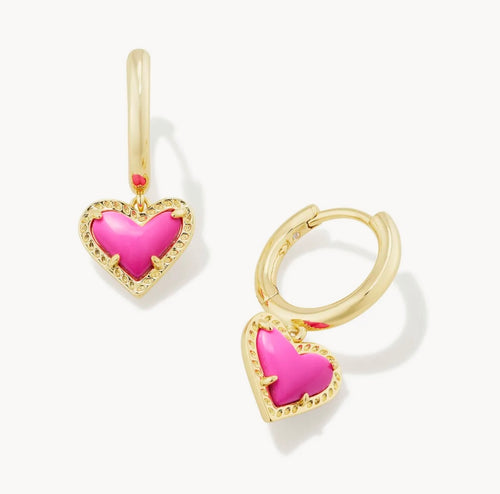 Ari Heart Gold Huggie Earrings in Neon Pink