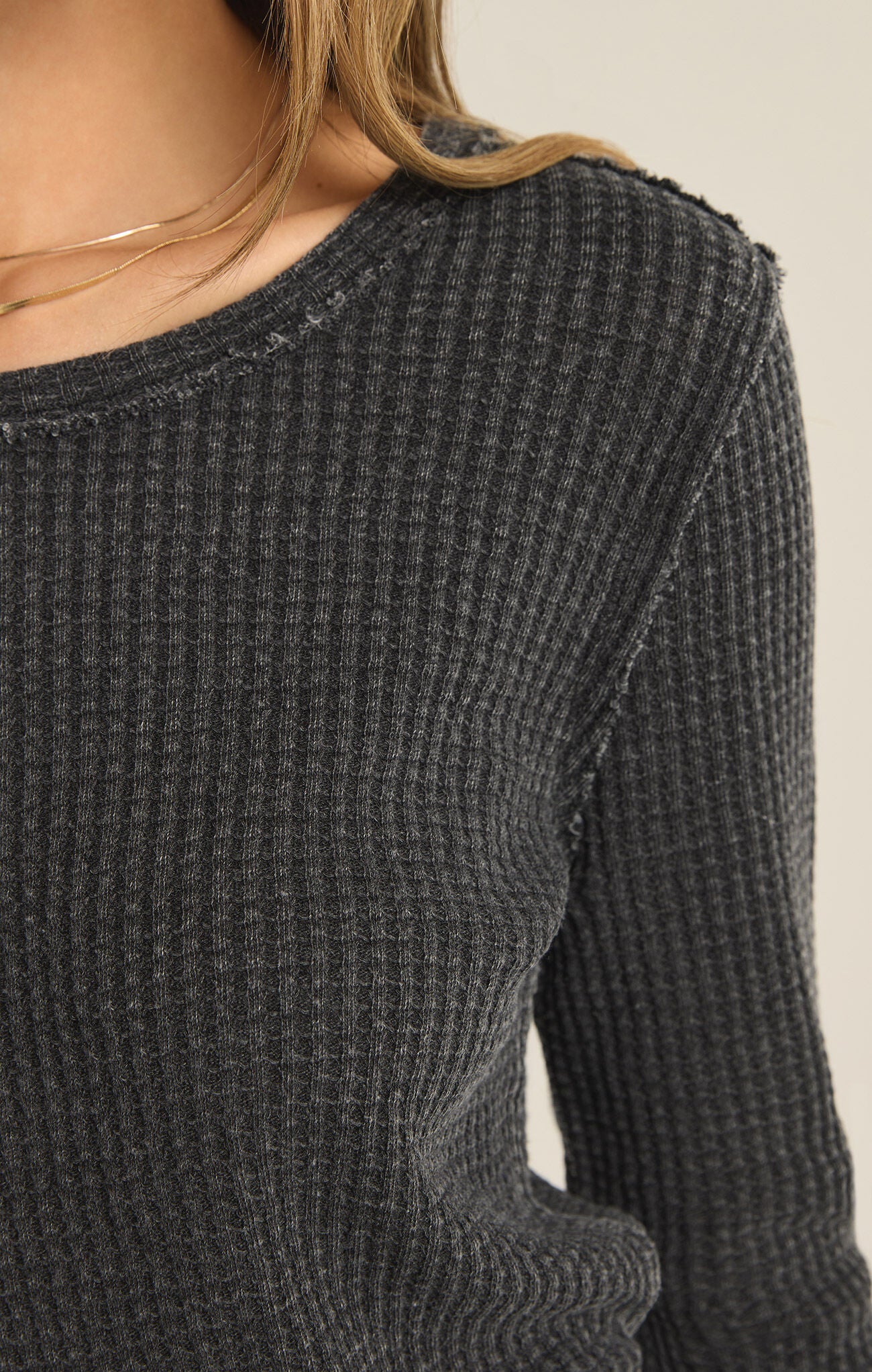 Your new favorite thermal is here! Lightweight and classic, it's easy to layer this crew neck with its raw edge detailing and so comfortable you'll wanna wear it from sunrise to sunset.