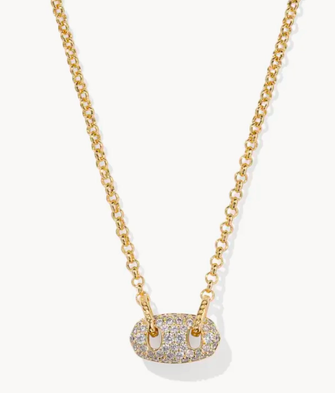 Every day calls for a bit of glam! Our take on the hardware jewelry trend, the Bailey Gold Pave Short Pendant Necklace in White Crystal pairs sleek metal with micro pave crystals to create your new favorite luxurious layerable. Paired with a sleek chain or sparkling choker, this pendant makes just enough of a statement to stand out.