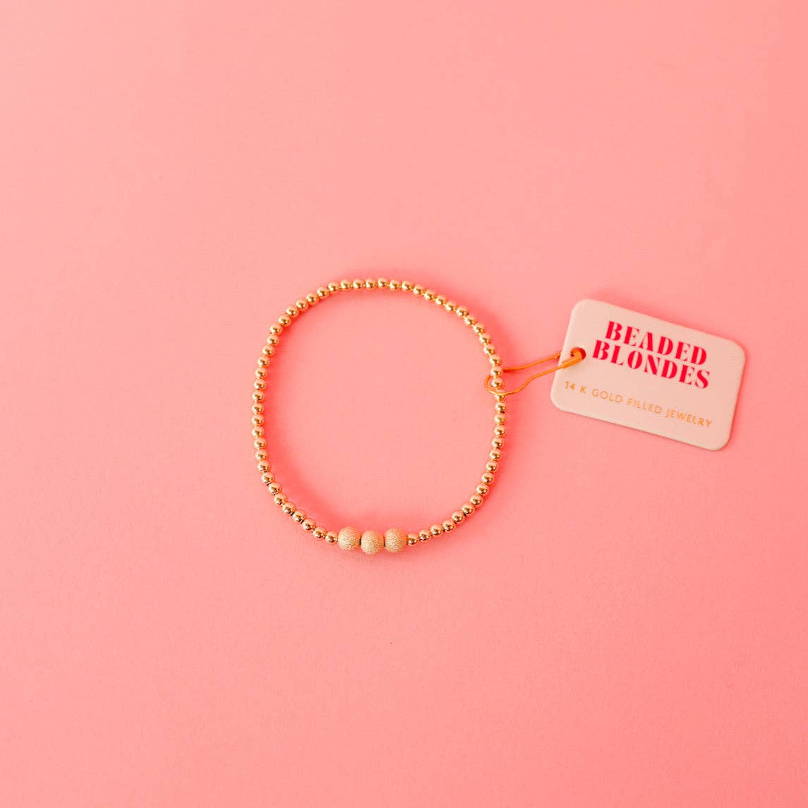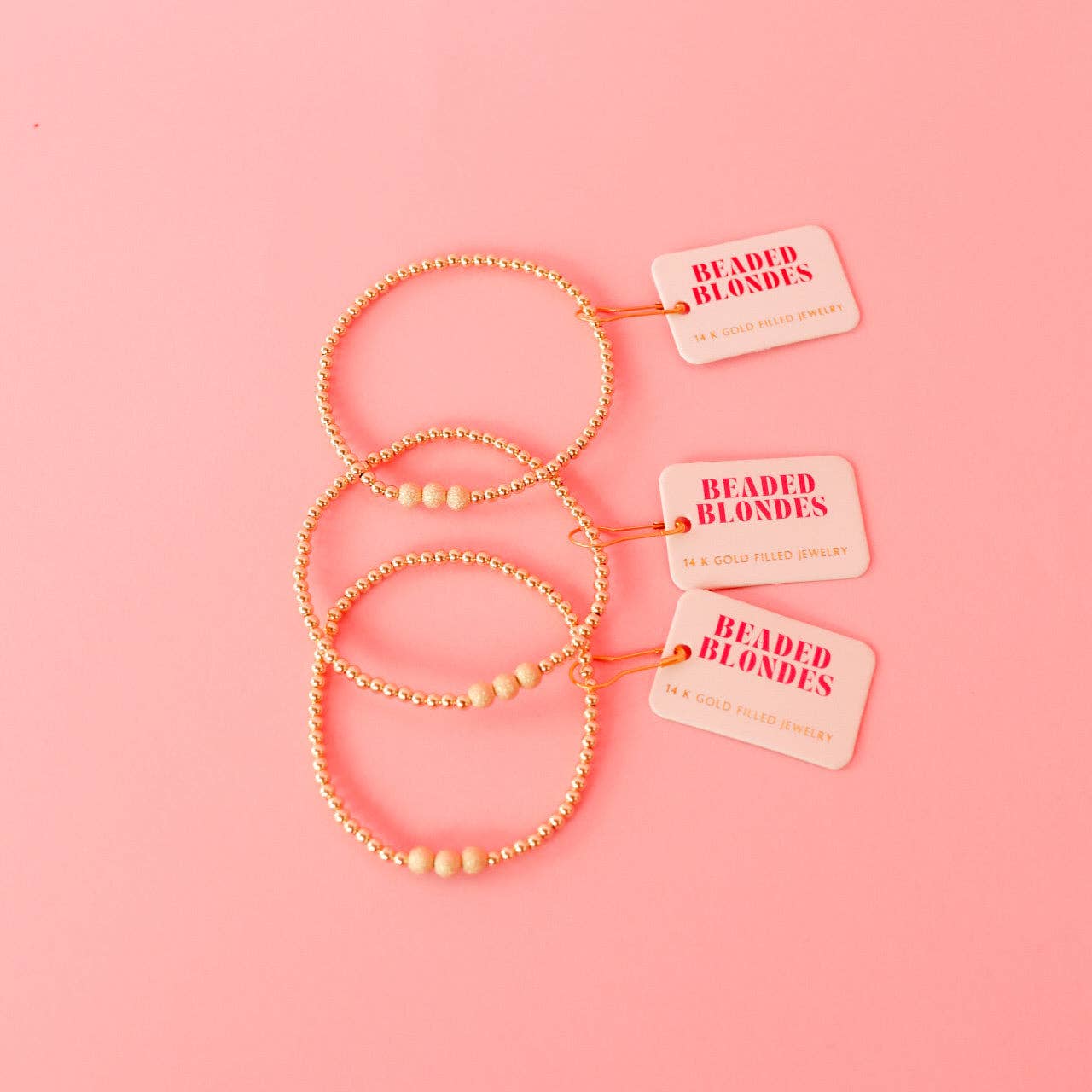 5mm stardust beads & 3mm 14 K gold filled beaded bracelet! The perfect addition for every day or the holidays. Material: 14 K gold filled beads and durable elastic string so perfect for everyday wear! Sweat proof, water proof and tarnish free!
