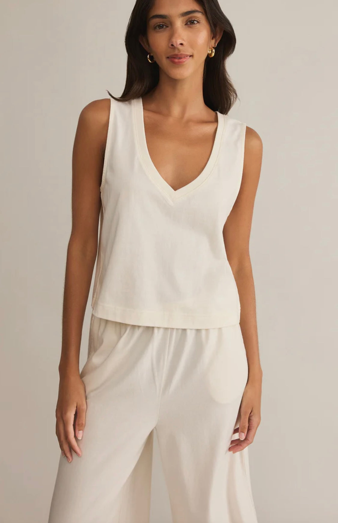 Our popular Sloane V-Neck Top now comes in this flattering v-neck version. Lightweight and made of cotton jersey fabric, this relaxed top is a versatile and effortless everyday piece, meant to be worn on its own.
